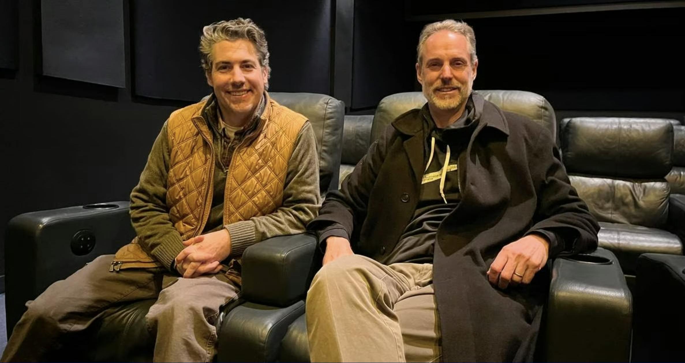 Clay Stamper, left, and Steve Sarowitz sit in one of five theaters at Wayfarer Theaters in downtown Highland Park. The new venture will have its soft opening on Feb. 10. (Gavin Good (Lake County News-Sun))